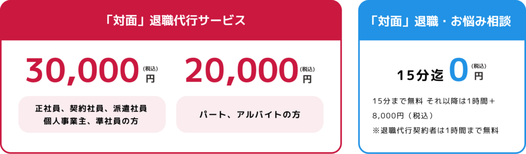 一般的な退職代行サービスの平均価格は、2万7000円ぐらいですが、退職代行モームリでは正社員が2万2000円、アルバイトが1万2000円で利用できる破格の値段設定です。